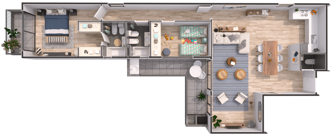 Ideal para familias. Combina tranquilidad, a partir de espacios aireados y luminosos debido a su edificación de altura media.
